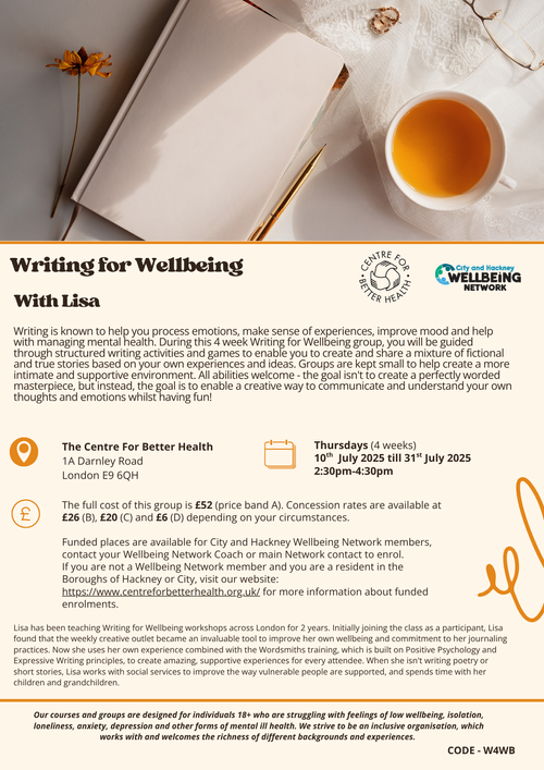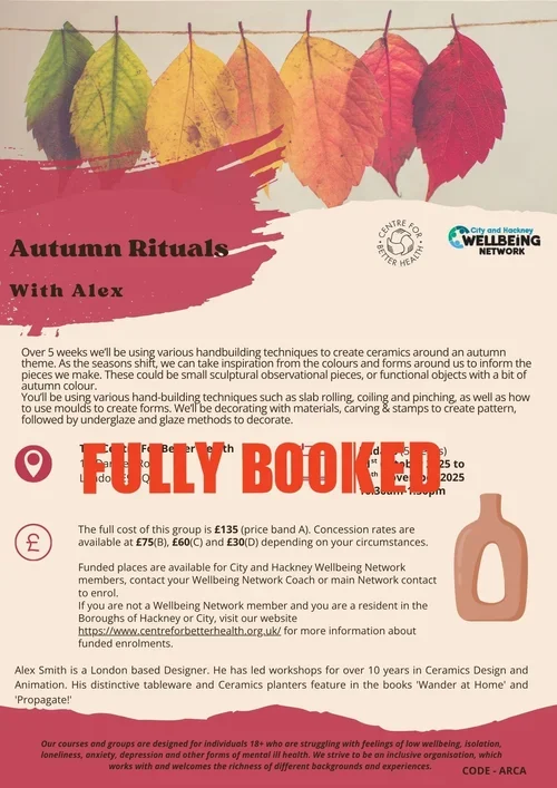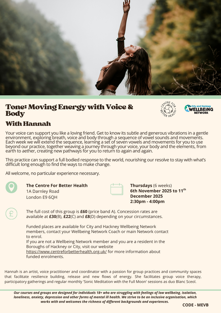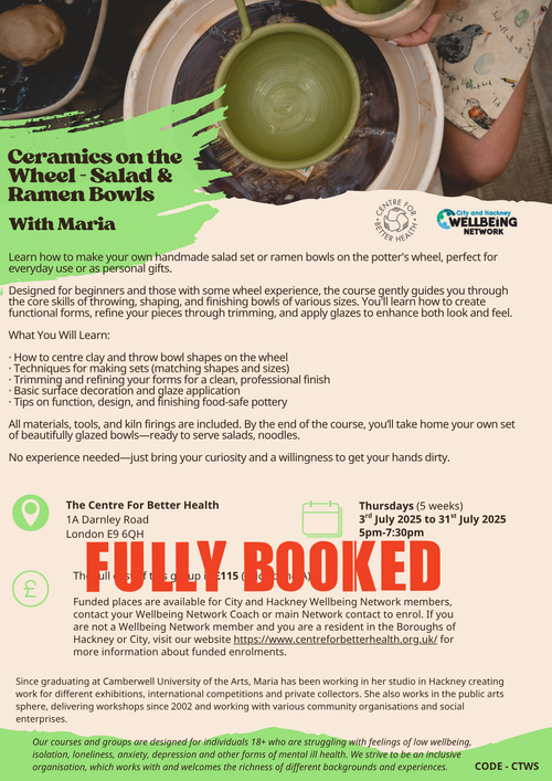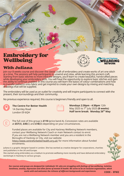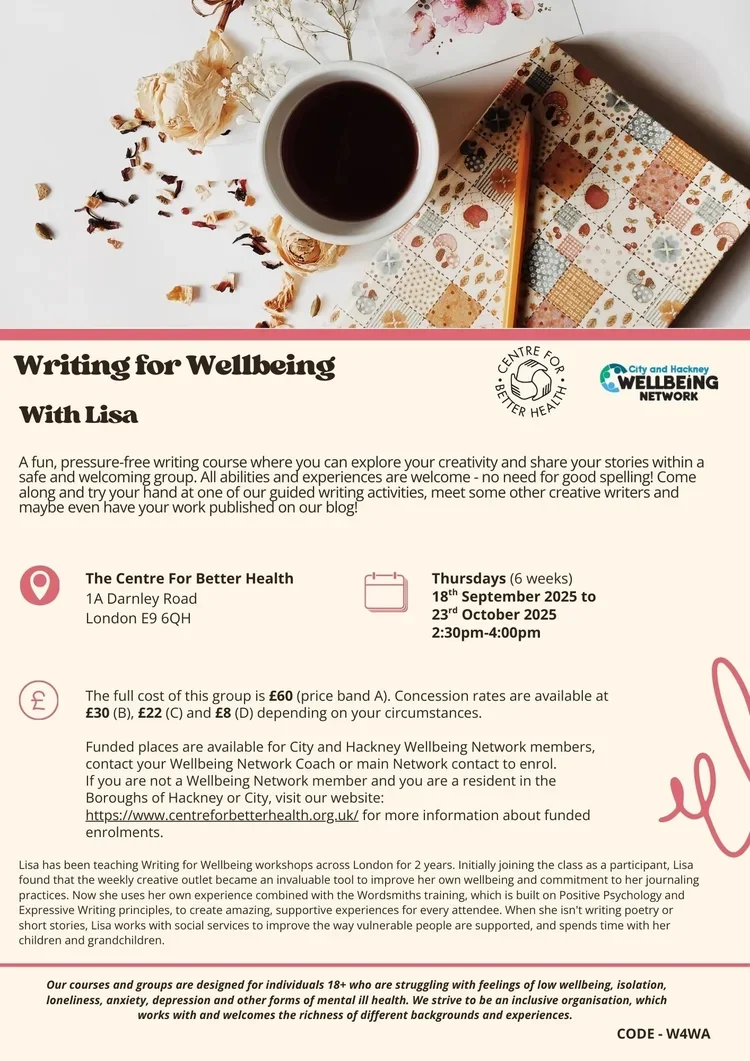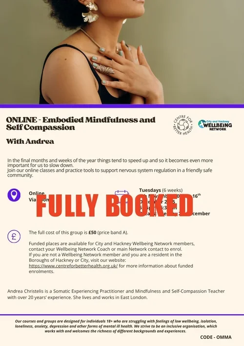 Fully funded places are available for City and Hackney Wellbeing Network members.