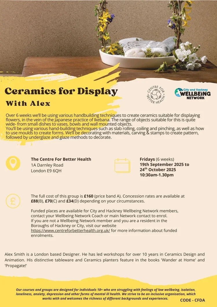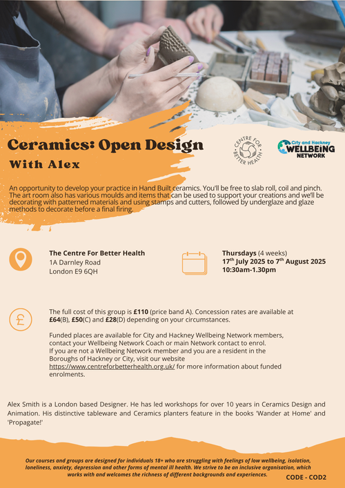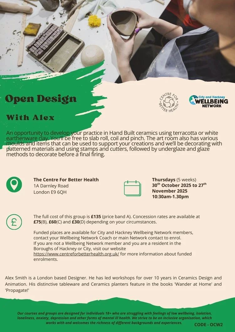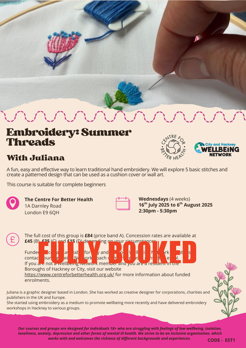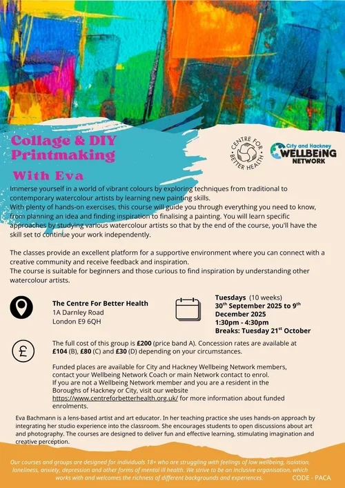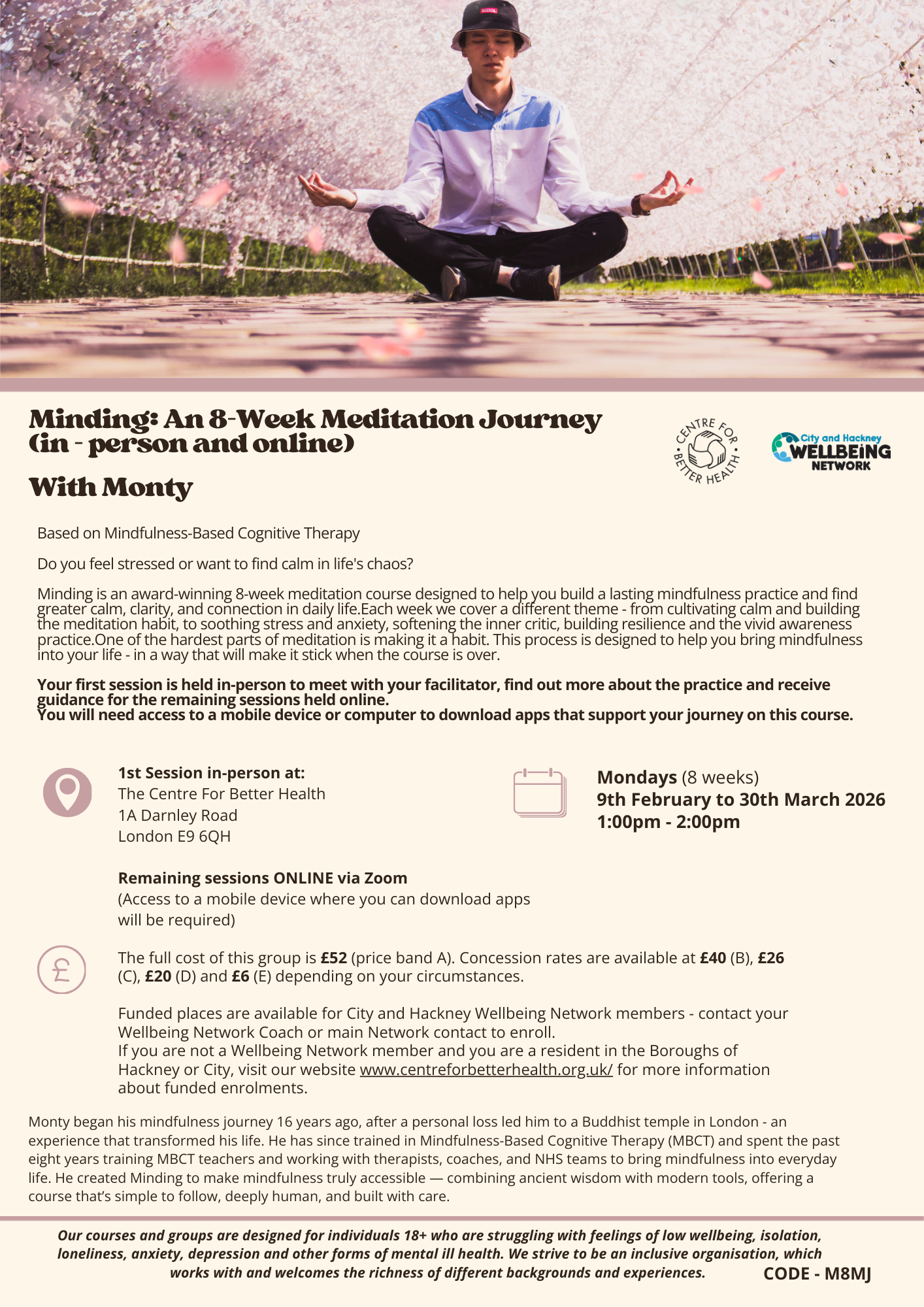 Fully funded places are available for City and Hackney Wellbeing Network members.