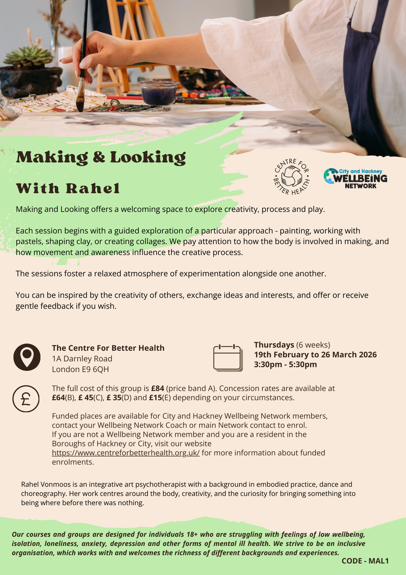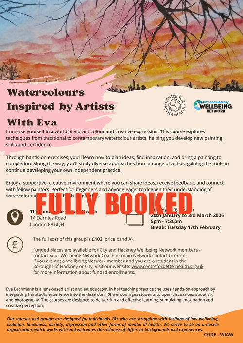 Fully funded places are available for City and Hackney Wellbeing Network members.